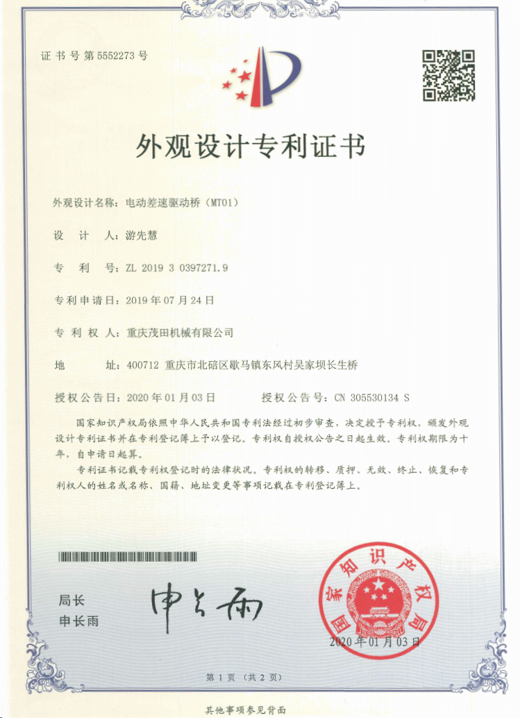 重慶茂田機械有限公司是國家級小巨人企業(yè)、國家高新技術企業(yè)、重慶市專精特新企業(yè)、重慶市知識產(chǎn)權優(yōu)勢企業(yè),致力于現(xiàn)代化山地農(nóng)業(yè)機械、各類非標減速電機及其控制系統(tǒng)的研發(fā)、生產(chǎn)、銷售。擁有重慶市市級研發(fā)平臺1個 目前研發(fā)、生產(chǎn)、銷售產(chǎn)品廣泛應用于農(nóng)業(yè)機械、醫(yī)療康復設備、交通代步工具、智能搬運設備、以及機器人動力系統(tǒng)等領域。我們的產(chǎn)品具有完整的自主知識產(chǎn)權,擁有多項專利技術及“重慶